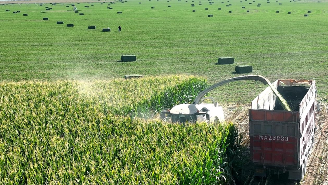 近年来,公司始终坚持“以草促畜、种养结合、循环发展”理念,通过“企业+基地+农户”的共赢发展模式,在为自身畜牧业产业高质量发展保驾护航的同时,有效带动了当地种植户增收致富。今年,计划收购青贮玉米30万吨,保障19个牧场52000头奶牛“食粮”充足,目前已完成收购12万吨。下一步,前进集团将按照时间节点,集中机械和人力加快推进收获进度,力争在最短的时间内全面完成青贮收购。